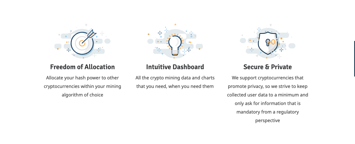 As miners, we are processing and verifying the transactions of the cryptocurrency ecosystems and keeping their public transaction history (=blockchains) maintained and secure. For this, the mining community is rewarded with the networks’ transaction fees and newly created coins. It’s a win-win situation! When you start mining with us, you are getting your share of this reward.