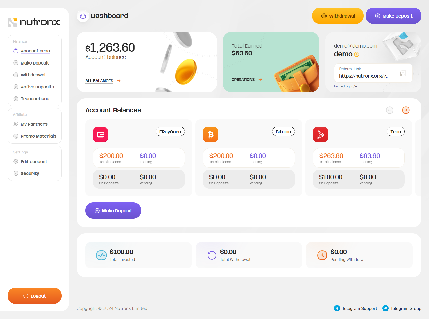 Make DepositAccess your personalized dashboard to monitor the progress of your investment. Here, you'll find real-time statistics, including your hourly earnings, total returns, and account balance.